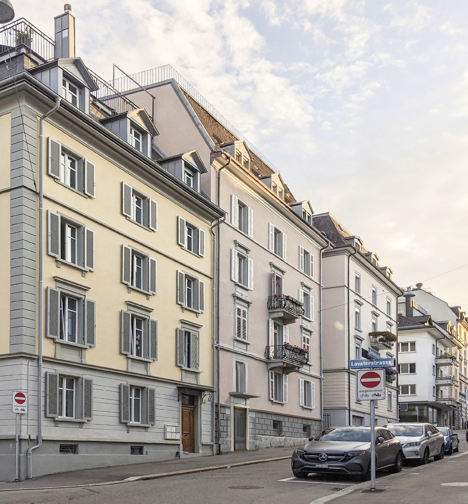 Das Projekt sieht vor, die bestehenden Geschosswohnungen in zwei separate Wohneinheiten zu unterteilen und das Gebäude ausschliesslich zu Wohnzwecken umzunutzen. Die Wohnungen, welche heute über das Treppenhaus auf der Hofseite erschlossen werden, sollen neu einen repräsentativen Eingang zur Sternenstrasse erhalten, wie es in der unmittelbaren Nachbarschaft ebenfalls üblich ist. Dieser fügt sich tektonisch in die für die Quartiererhaltungszone klassische Dreiteiligkeit der Fassade ein und greift deren bestehende Gestaltungselemente auf. Durch die Installation eines Aufzugs wird eine komfortable und barrierefreie Erschliessung aller Wohneinheiten ermöglicht. Der hintere Eingang soll weniger prominent gestaltet werden, um eine privatere Nutzung des Hofraums zu ermöglichen. Zudem ist die Planung einer zusätzlichen Balkonschicht auf der Hofseite für die Obergeschosse vorgesehen, sodass alle Wohnungen von einem hochwertigen Aussenbereich im optimal orientierten und ruhigen Hof profitieren können.